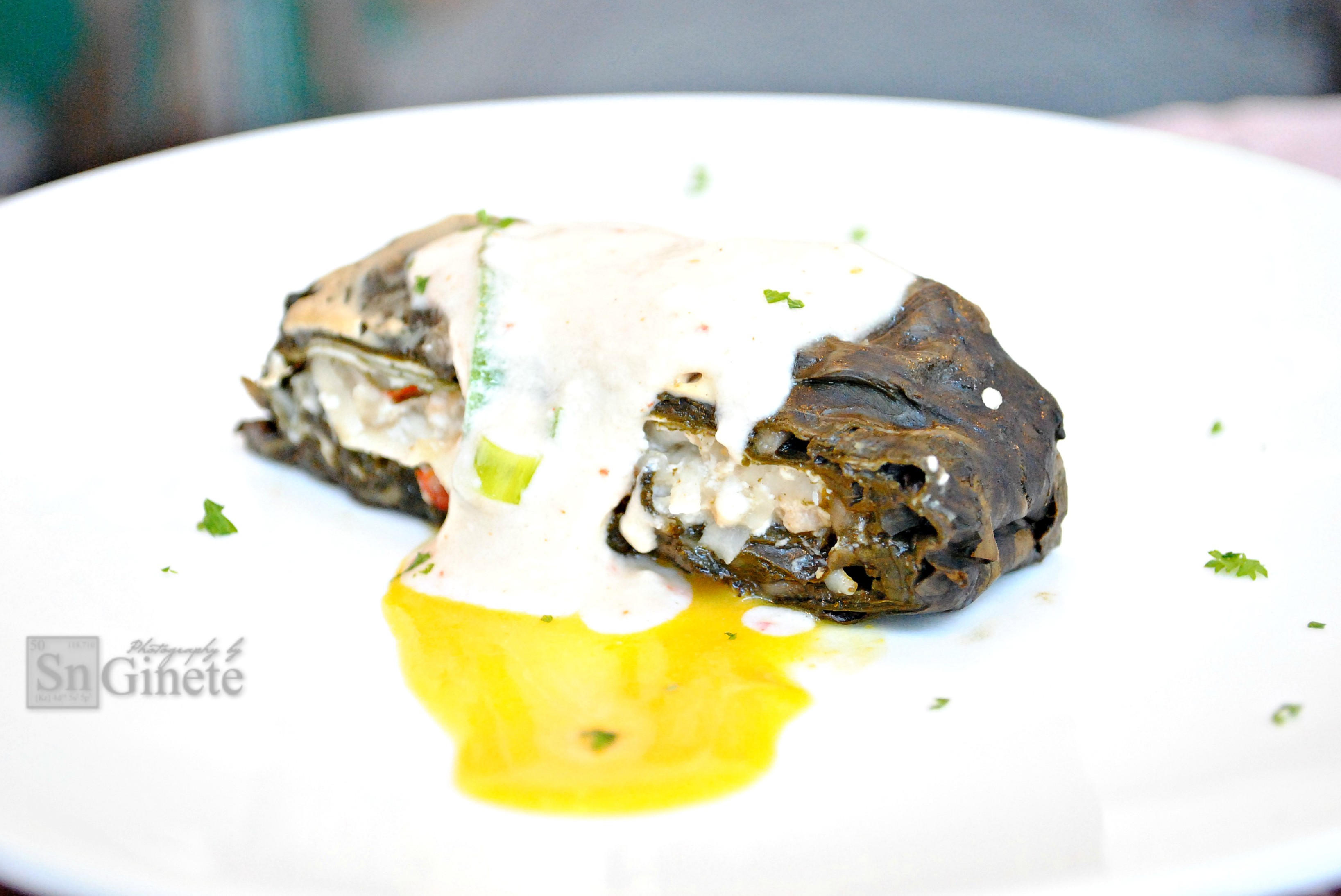 This has been one of my family’s favorite Bicolano dishes as well. But what totally got me hooked with Chef Anthony’s version is the filling between the taro leaves. It consisted of coconut meat cut into thin strips with creamy coconut milk sauce that is a bit spicy.