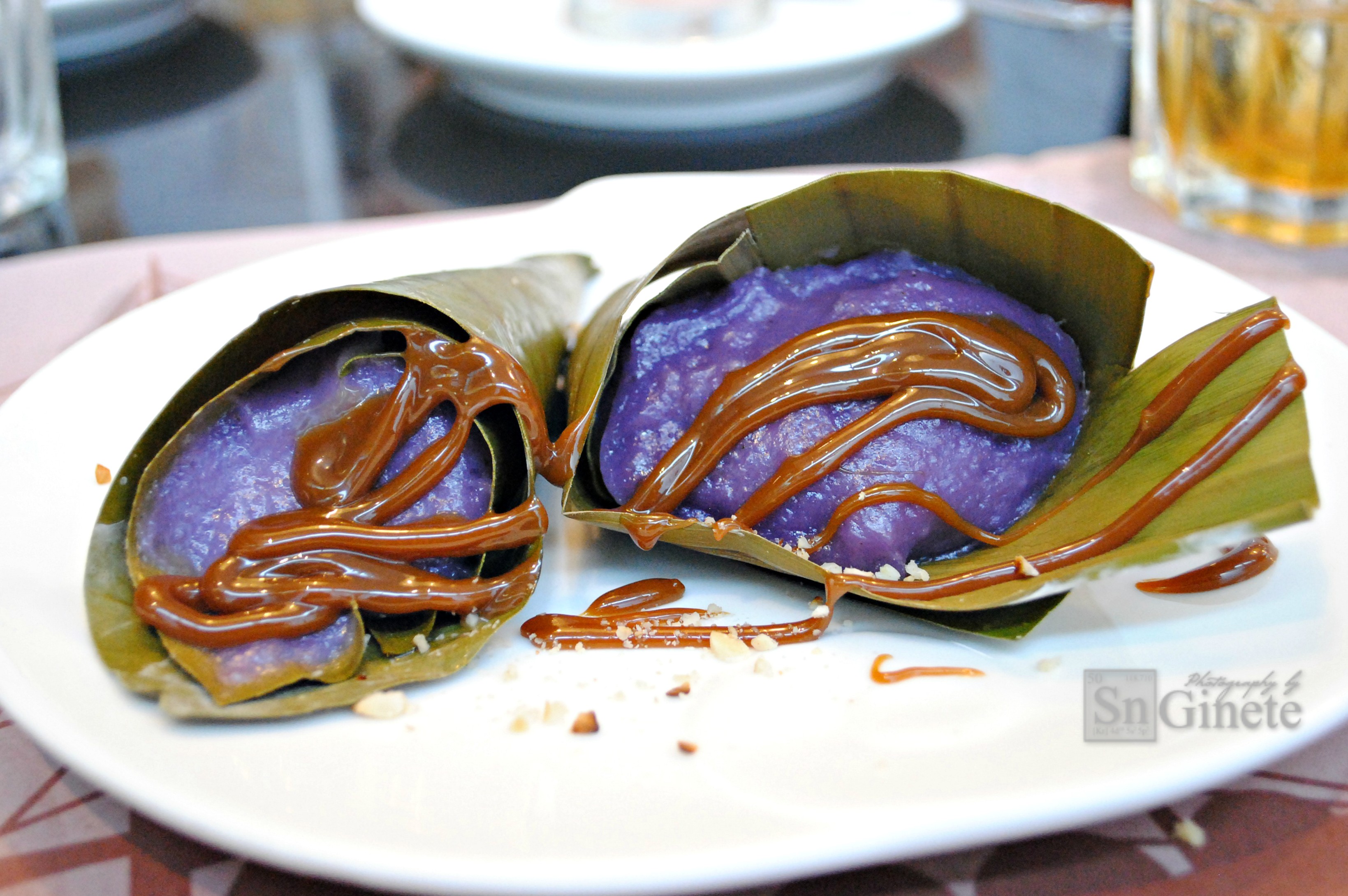 Next dessert would be Sayongsong by Chef Adam. According to him, it is a native dish from Surigao that is one of his favorite desserts since he’s a kid. It is sticky rice colored in light purple and wrapped in a cone-shaped banana leaf which is similar to that of “calamay,” Bohol’s sweet delicacy. The caramel is just the perfect partner for this dessert.
