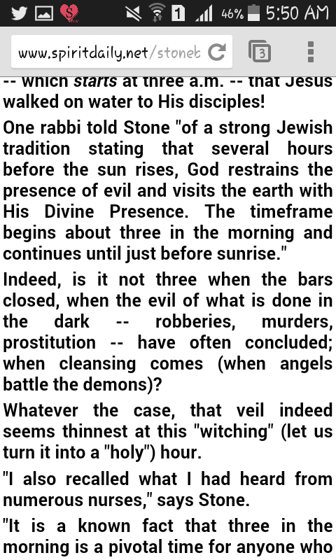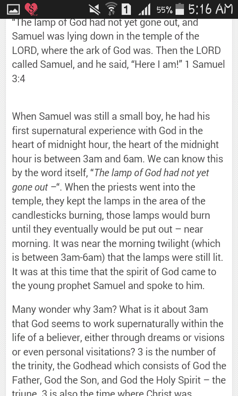 I just felt the need to browse a little more and stumbled across a forum regarding the biblical significance of 3am. And one comment just struck me the most: