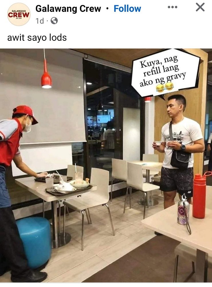 Can you feel the love tonight, Rafiki?I think he didn’t feel the love tonight, so he hid.Kuya Grab, amphibian po kasi dapat dinadala nyong sasakyan.Awww, you cutie patootie. Btw, whoever put this pooch there should also be in one of those branches just to make sure the dog is really enjoying this. Try to guess how much it costs.Yep, and you’re heading to your Final Destination, too.Dodge it, just Dodge it.Pinapaalis ka na Kuya customer kasi naubos mo na daw isang pitsel ng gravy kaka-refill.“Off with their heads!”– from the movie Alice in WonderlandUhh, can I go home first? I think I left my brain cells there.Uhm, the plane will be on the North side? Because that’s the only direction that’s not mentioned. And I don’t follow instructions.Yes, even laughing silently can get you so tired. Keeping all that laughing gas inside you is no joke. Come on now, release it.Let’s all be real now.I hope this is still a joke 5 years from now.