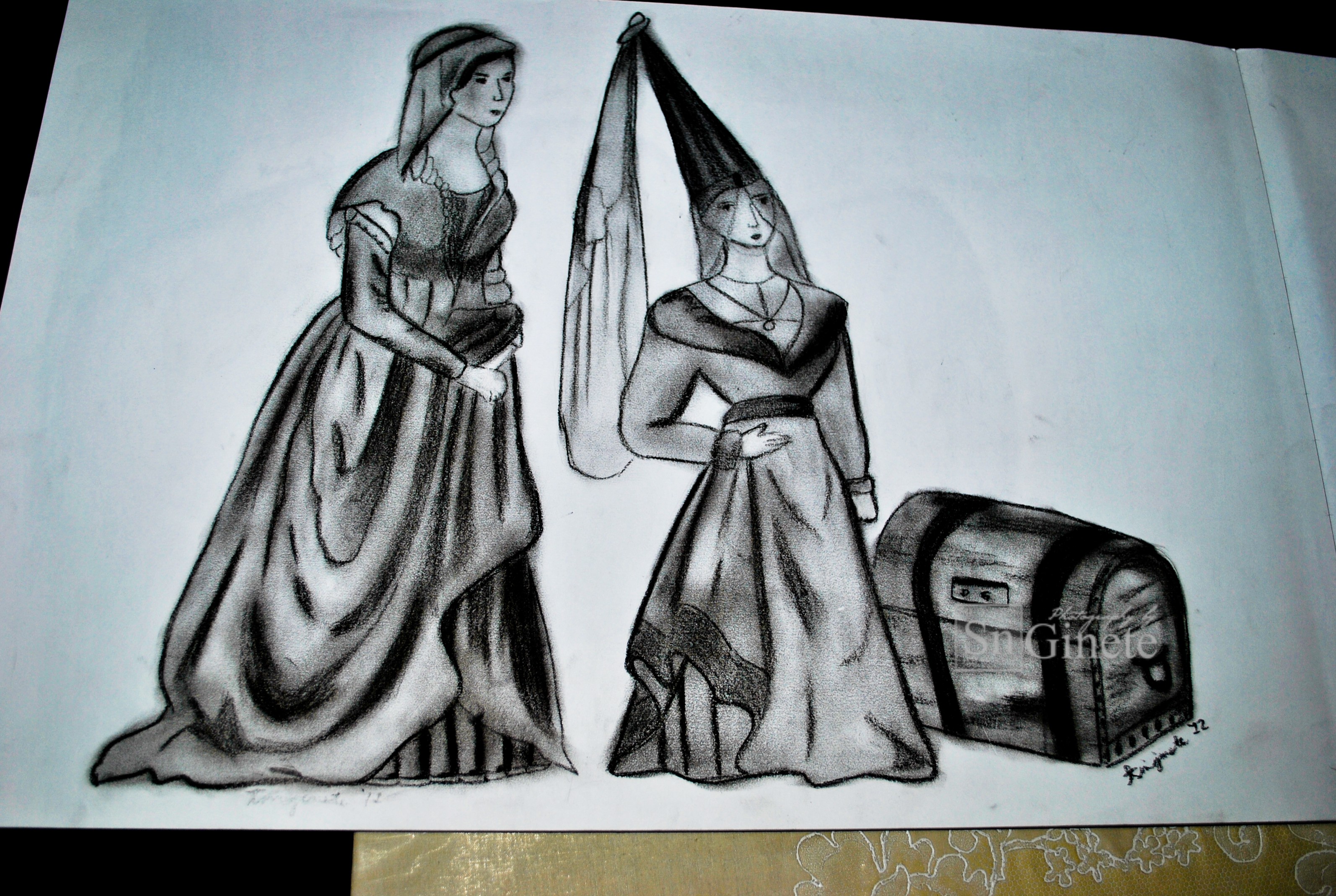 “Princess and Her Maid” “Couple Sketch” (12″ x 18″, Charcoal Sketch)
